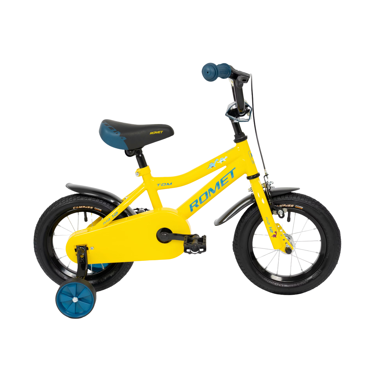 Laste jalgratas Romet Tom on ideaalne esimene jalgratas. Raam on kohandatud kõige nooremate ratturite vajadustele, et nad õpiksid võimalikult kiiresti iseseisvalt sõitma. Tom 12 on 12-tolliste ratastega mudel. Mugav ja turvaline Teie lapsele tänu kõrgele lenksule. Ühekäiguline jõuülekanne on lihtne ja töökindel lahendus, mis pakub noortele ratturitele maksimaalset sõidurõõmu. Eesmine veljepidur ja tagumine jalgpidur tagavad lapse turvalisuse tema esimestel sõitudel. Abirattad võimaldavad turvaliselt õppida ning kui sõitmine on selge, saab need hõlpsasti eemaldada ilma uut ratast ostmata.