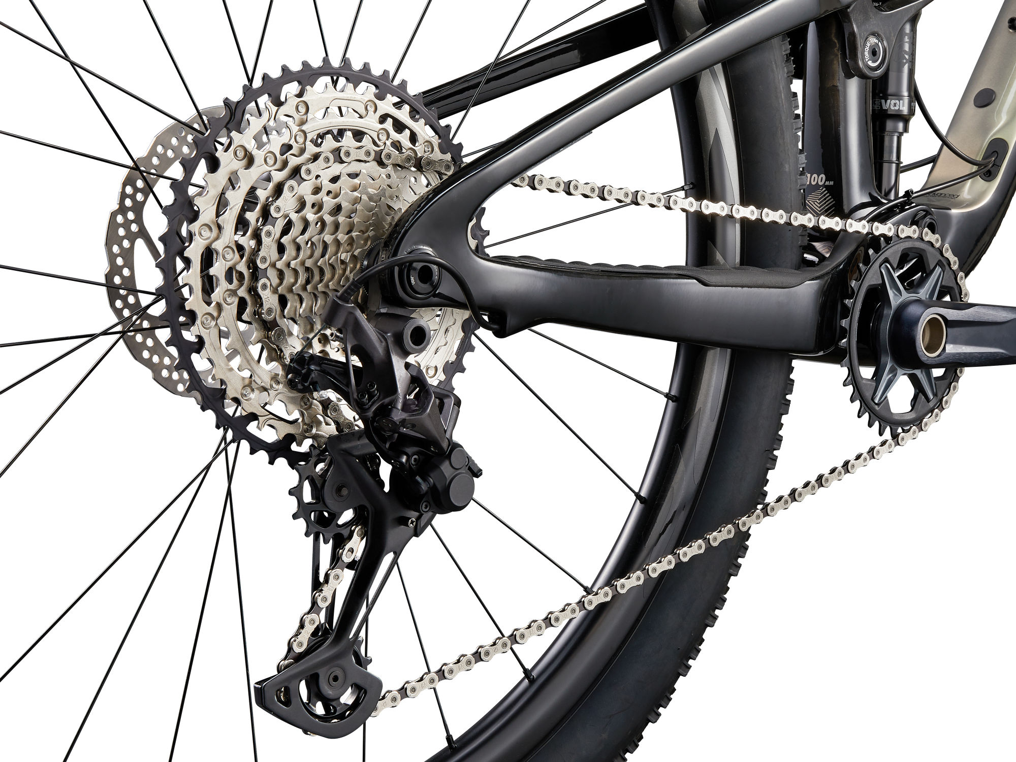 - Raam: Advanced-grade composite front and rear triangles, 100mm FlexPoint Pro suspension, 12x148mm thru-axle