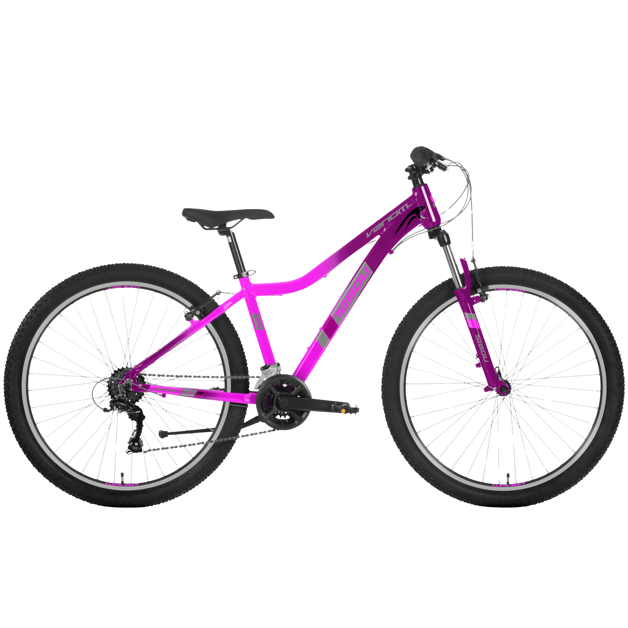 Noorte jalgratas Tabou Venom 1.0 W on noorte tüdrukute maastikusuunitlusega jalgratas, mis sobib nii pikkadeks sõitudeks künklikul maastikul kui ka linnaasfaldil. Raamigeomeetria võimaldab lihtsasti ratta selga istuda ja sealt maha tulla ning lisaks ka mugavat istumisasendit. Venom 1.0 W on varustatud kvaliteetsete komponentidega nagu Shimano käiguvahetus, V-pidurid, Zoom esiamort ning seisujalg.